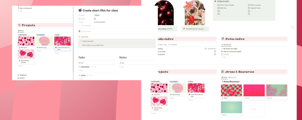 The ultimate aesthetic PARA Life Planner Notion Template! 🍒🌸 Unleash the power of organization through proper utilisation of the important areas of your life - via Projects Areas Resources & Archiving (PARA) as you use a template Lana would be proud of. Embrace the sweetness of aesthetic organization in your digital life.